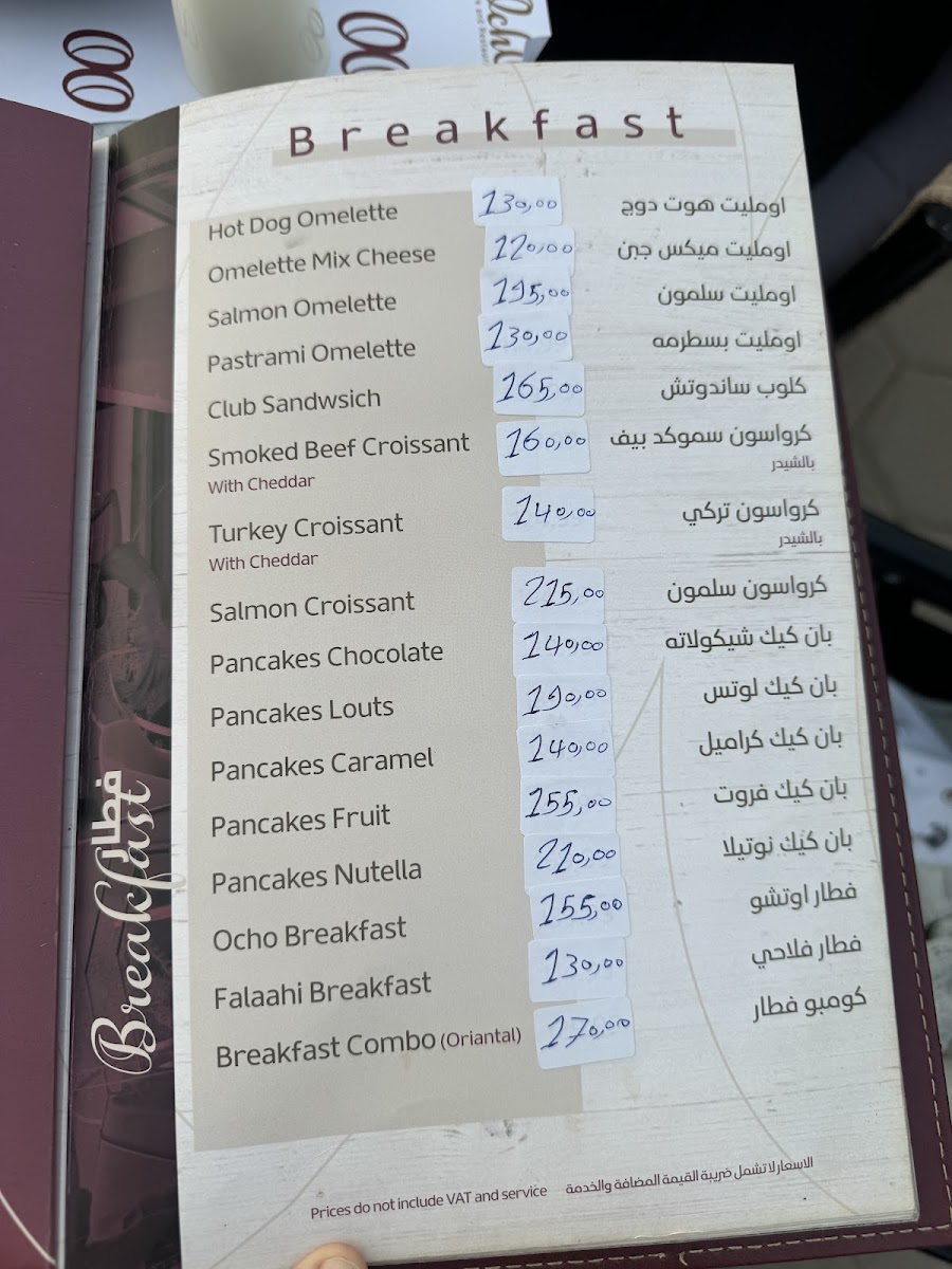 Food options include light bites and desserts, featuring traditional and popular choices such as شيز كيك (cheesecake) and أم علي (Um Ali). Dessert highlights include brownies served with ice cream, providing a sweet complement to the beverage offerings. Fresh juices, such as mango juice, are also available.